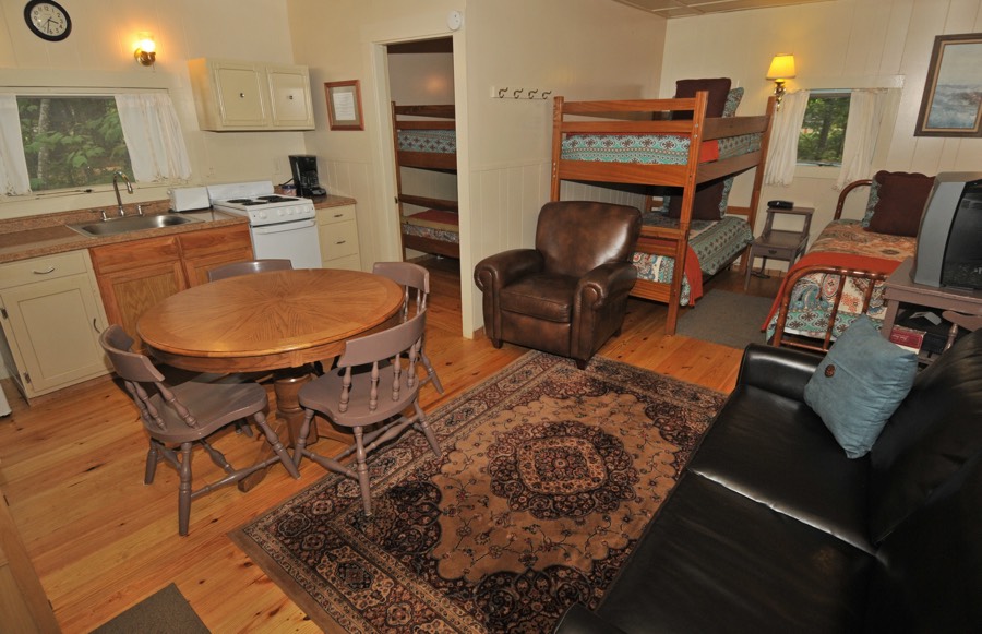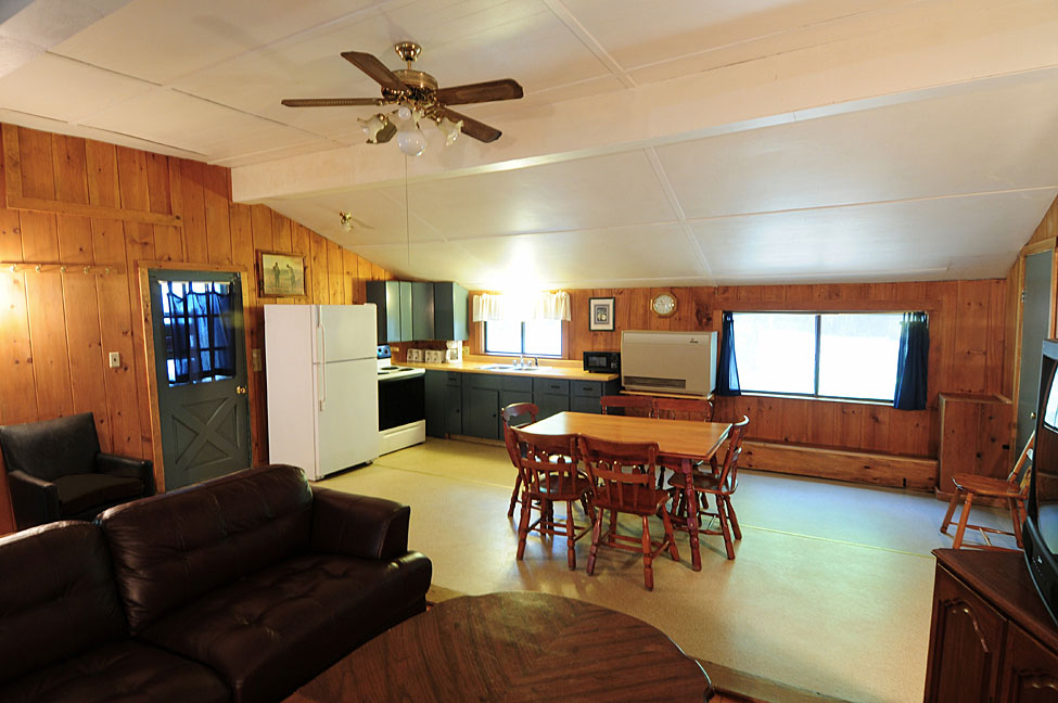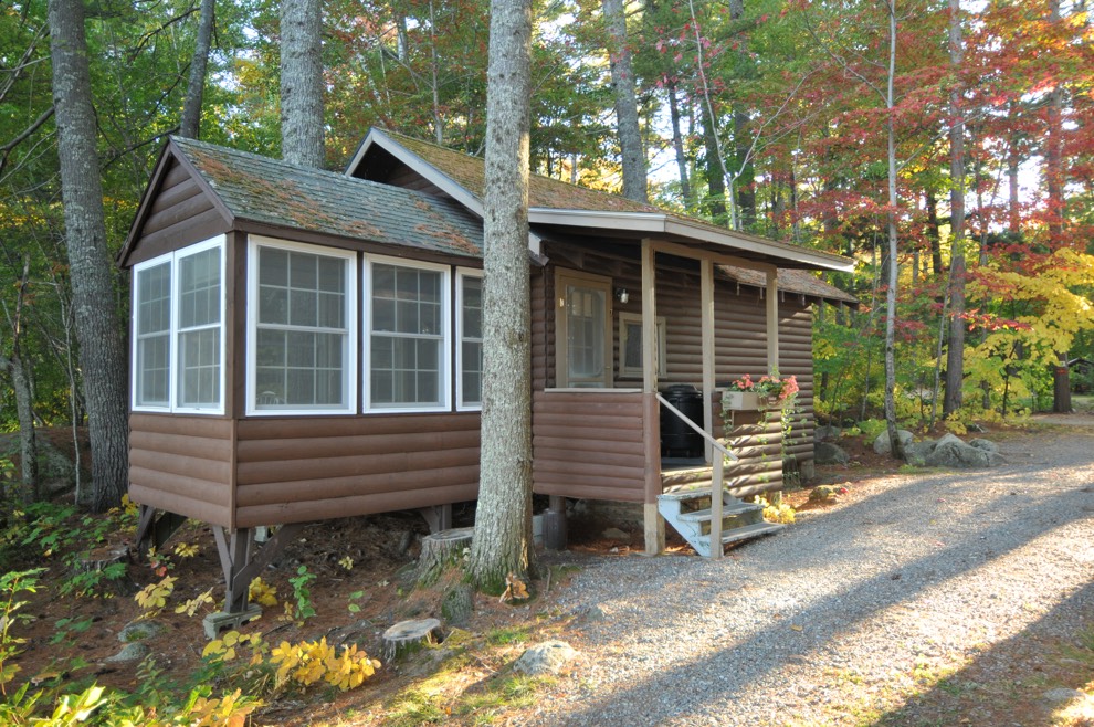 Our fully furnished lakeside and trailside cabins are a favorite of groups looking for a warm setting. Comfortably housing groups from 2 to 16, our cabins make for a perfect base camp when visiting the Katahdin region. We provide cooking utensils and all of the linens, except bath towels and paper towels (bath towels may be rented for $1 each). All cabins have heat pumps with air conditioning. Click here to view a map of our cabins and lower campground. There is a firepit available for use at each cabin. The grills are for charcoal only (charcoal is not provided) and the burning of anything else in them is prohibited. WI-FI is available!