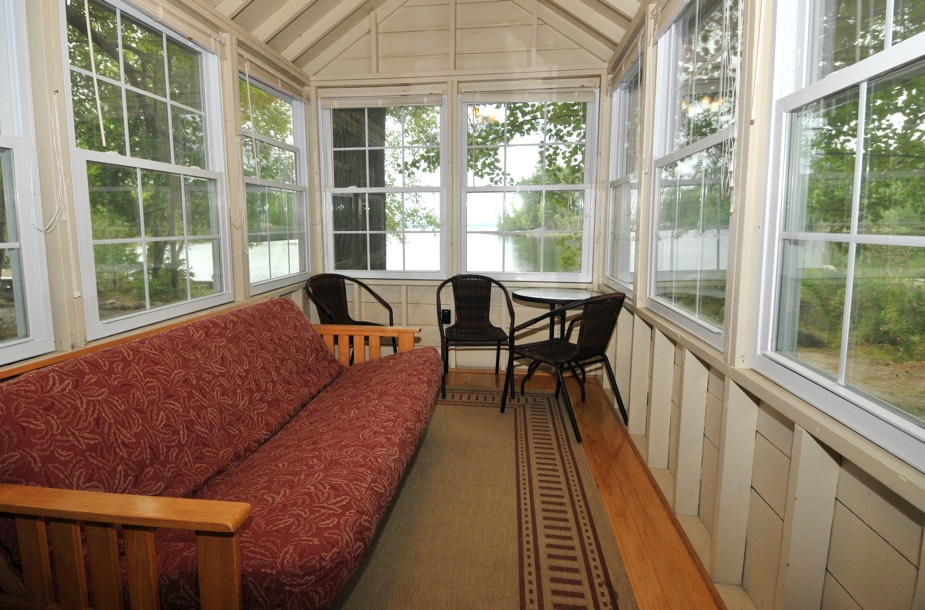 This medium-sized cabin features three separate sleeping areas, ideal for families or groups. One bedroom includes a set of bunk beds, the kitchen/living area offers another set of bunks and a twin bed, and the lakeside sunroom is furnished with a double futon. The cabin includes a heat pump for both air conditioning and heat. A private, detached bath and shower is located just 10 steps behind the cabin for convenient access.