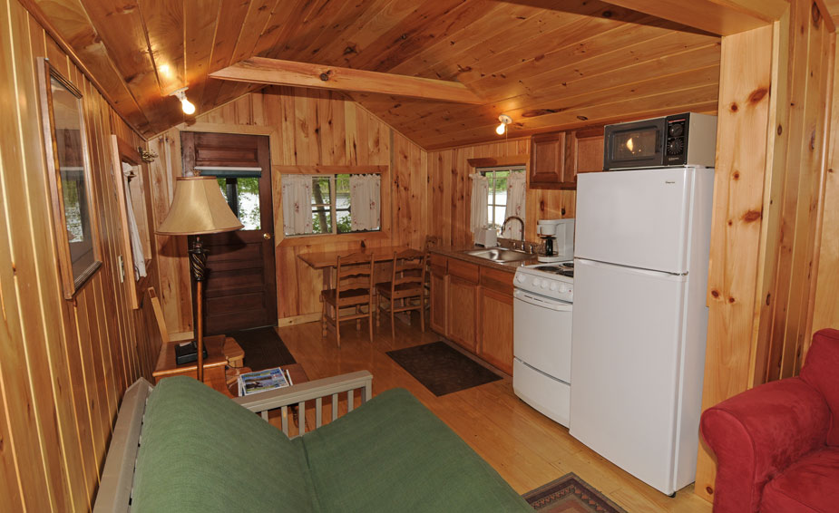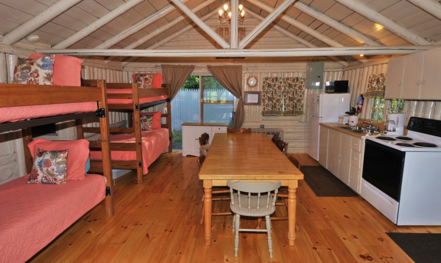 REMEMBER: Loon, Little Rocky, Doubletop, and Togue each have private bathroom facilities located just steps behind the cabin. Sleep Cabins use the lower campground bathrooms and coin-operated showers; coins are available at our office. Sleep Cabins also feature an efficiency-style kitchen with running water at the sink. Quiet hour begins at 10 PM, but we kindly ask that all music be turned off by 9 PM to ensure a peaceful experience for everyone.